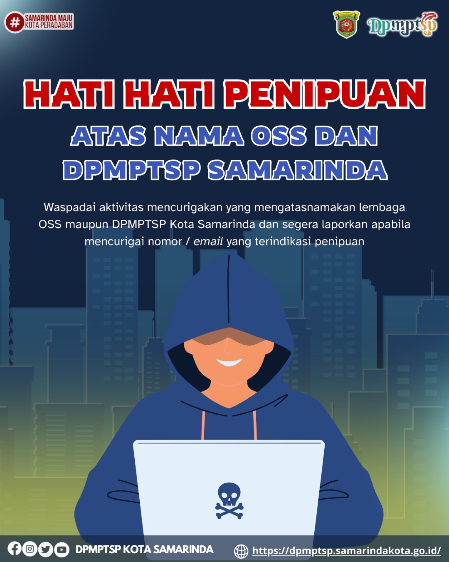 Apabila menerima pesan, telepon, atau tawaran layanan yang mencurigakan dan mengatasnamakan instansi kami, harap melakukan konfirmasi melalui kanal resmi MPP Kota Samarinda.