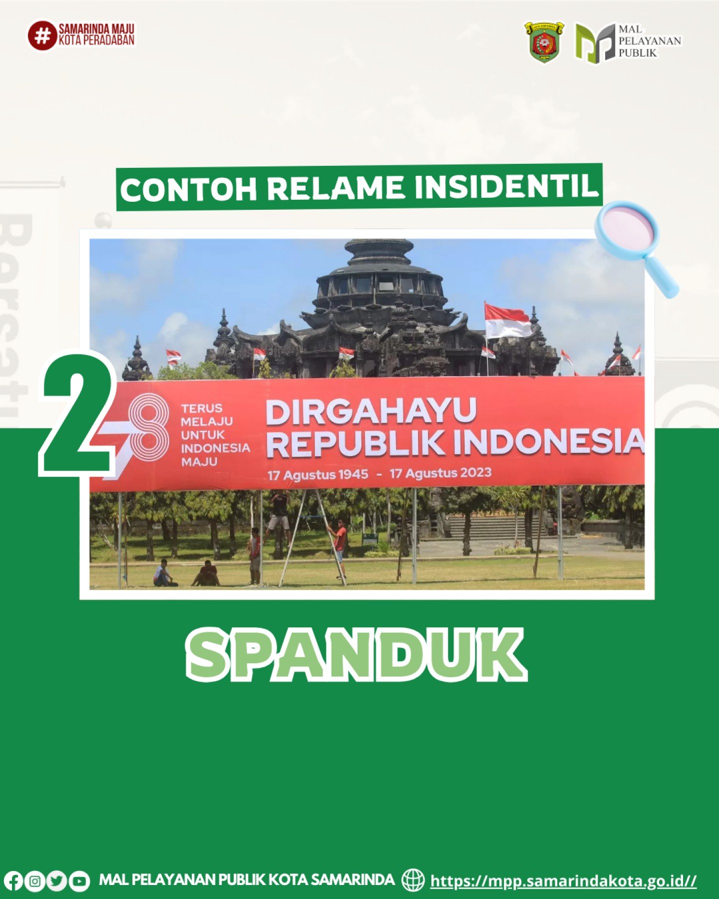 Spanduk acara, banner promosi, umbul-umbul, baliho event/kampanye, hingga papan pengumuman sementara termasuk reklame insidentil.